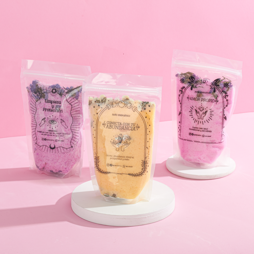 Tomar una pausa en tu día nunca se sintió tan bien~Un kit perfecto para sentir paz, relajarte y atraerte más amor, abundancia y protección a tu vida. Regálate bienestar, el elemento sal tiene la capacidad de ayudarte a armonizar toda tu energía.✨Beneficios energéticos disponibles:~Amor propio: Realiza una limpieza consciente con tu tema de energía, limpieza sexual, memorias del pasado, cortes de relación de ex parejas y conexión con tu amor propio y niña interior.~Abundancia: Realiza una limpieza consciente sobre tu conexión con la energía del dinero, elimina esos bloqueos con creencias limitantes y te permite abrirte a la ley del merecimiento y el flujo de la prosperidad.~Limpieza y protección: Limpia y purifica tus 7 cuerpos sutiles (Chakras) y todo tu campo energético, purificando tu energía frente a cualquier frecuencia que no vaya en tu misma sintonía.-Cada sal incluye un cristal, guárdalo como amuleto para continuar con tu proceso de sanación y limpieza.-Incluye afirmaciones especiales de acuerdo a las referencias que adquieras